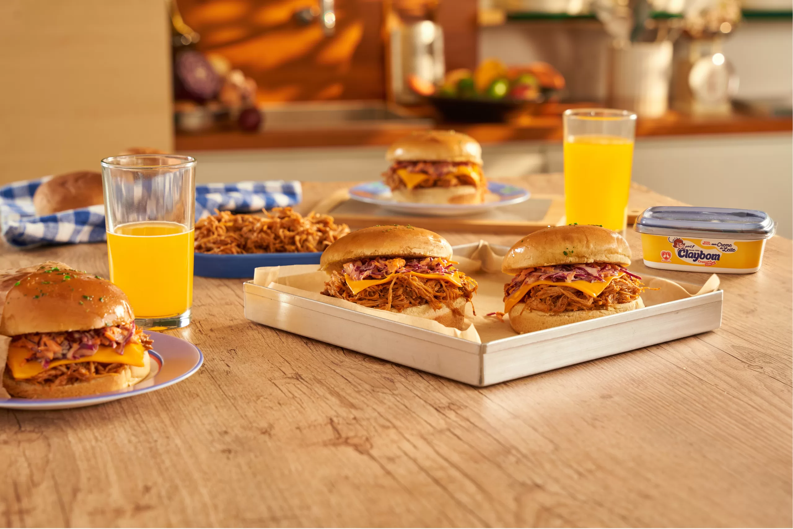 - Feche os lanches com o topo dos pães de hambúrguer e pincele com o restante da segunda medida de Claybom Cremosa com Sal Salpique a salsinha sobre os pães e leve ao forno preaquecido a 180 °C por cerca de 15 minutos, até que os pães fiquem levemente dourados. Retire do forno e sirva quente.