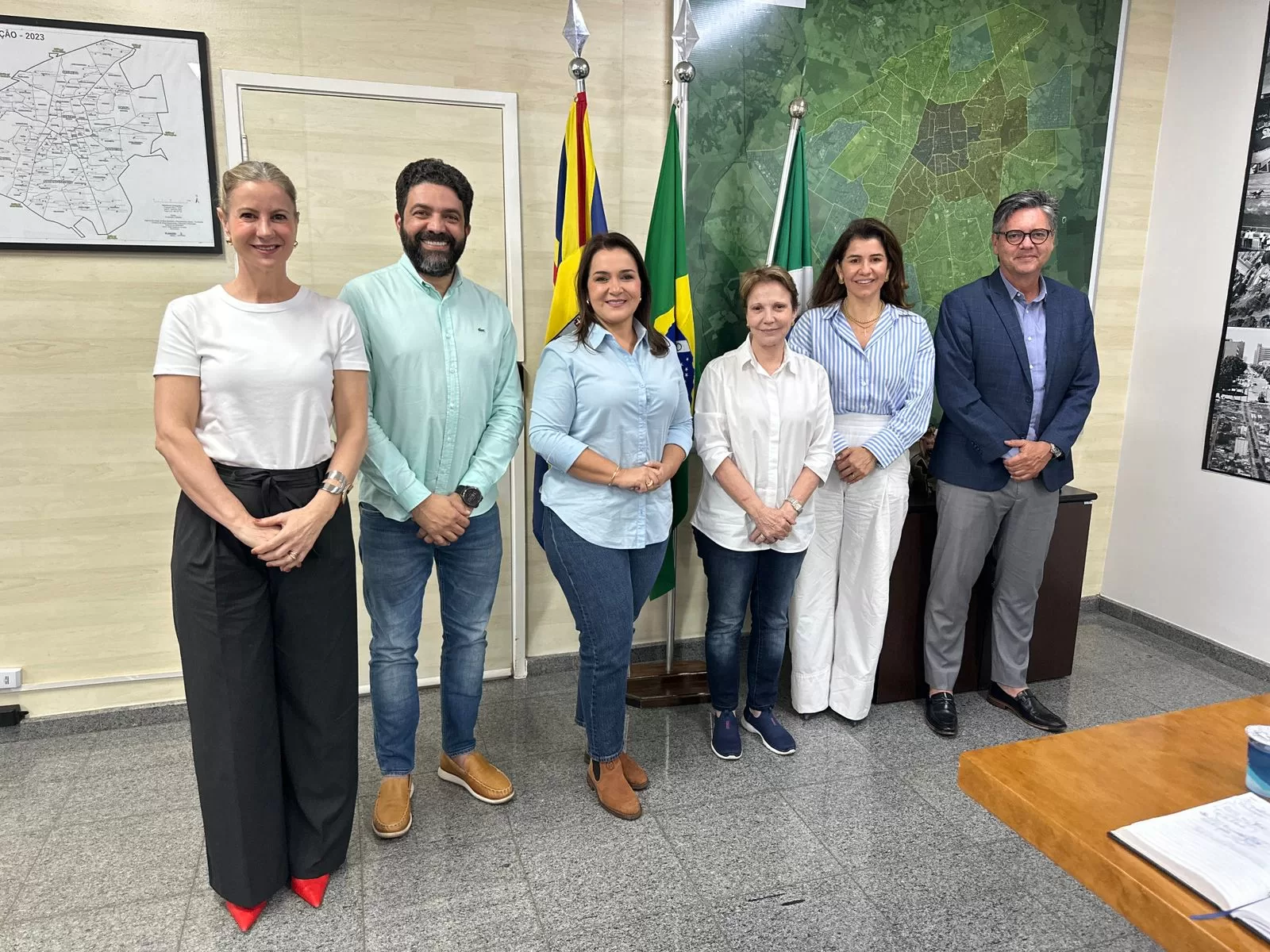 Participaram da reunião os secretários Ademar Silva Jr. (Meio Ambiente, Gestão Urbana e Desenvolvimento Econômico), Catiana Sabadin (Planejamento e Parcerias Estratégicas), Thelma Nogueira (Casa Civil) e Ulisses Rocha (adjunto da Secretaria de Governo e Relações Institucionais).