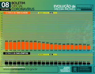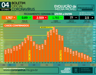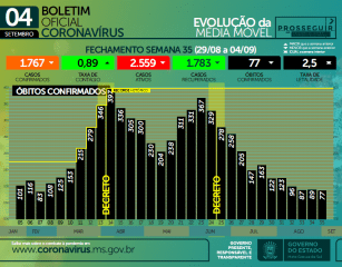 Dados do boletim Covid apresentados nesta quarta-feira (08) mostram que Mato Grosso do Sul fechou a semana epidemiológica n° 35 com o menor número de casos e mortes desde o começo do ano.