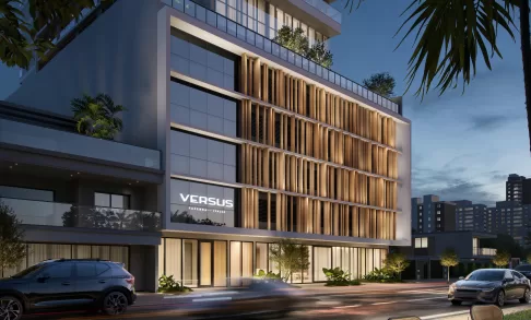 Com esse desafio em mente, Osvaldo Segundo projetou ambientes de convivência para o Versus, edifício que reúne studios de 34m² a 43m². No empreendimento, o arquiteto aposta em linhas contínuas e materiais naturais para criar espaços funcionais, elegantes e que gerem a sensação de amplitude.