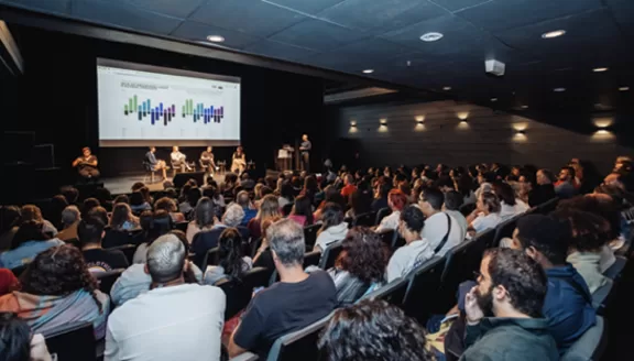 Público acompanha a apresentação dos dados da pesquisa Cultura nas Capitais, em São Paulo. Crédito: Luis Benedito / Fundação Itaú