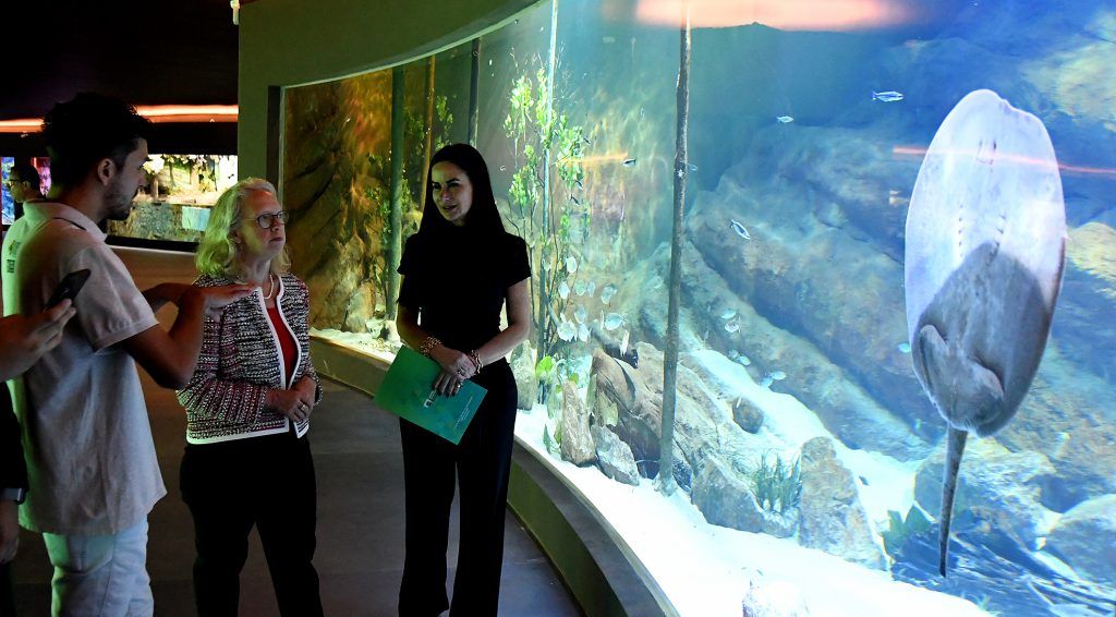 Jennifer May, embaixadora do Canadá também passou pelo complexo e ficou encantada com o que viu. “Foi incrível ter a oportunidade de conhecer, realmente dá uma noção incrível de como é a vida aquática do Pantanal, não apenas da forma como geralmente vemos acima do solo, mas também por baixo das águas”, destacou.
