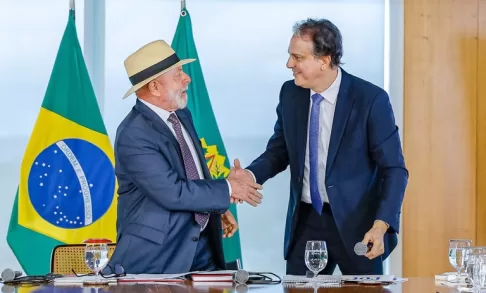 Presidente Lula e ministro Camilo Santana (Educação) durante a cerimônia de sanção do Projeto de Lei n° 4.932/2024, que dispõe sobre a utilização, por estudantes, de aparelhos eletrônicos portáteis pessoais nos estabelecimentos públicos e privados de ensino da educação básica – Foto: Ricardo Stuckert / PR