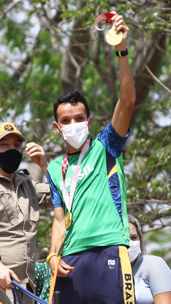 Dono de duas medalhas de ouro no Atletismo dos Jogos Paralímpicos de Tóquio 2020, conquistadas nas provas de corrida de 1.500 e 5.000 metros na classe T11, para deficientes visuais, o paratleta campo-grandense Yeltsin Jacques percorreu a Capital de Mato Grosso do Sul nesta quarta-feira (8) em uma carreata que reuniu familiares, amigos e fãs do esporte. No final do percurso, na Governadoria, ele se reuniu com o governador Reinaldo Azambuja e destacou a importância de políticas públicas voltadas ao esporte.