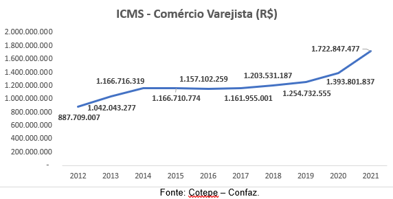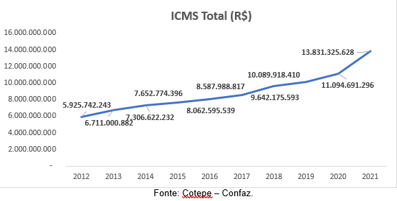 Apesar da pandemia ainda assombrar a economia brasileira, a arrecadação do ICMS (imposto sobre circulação de mercadorias e serviços) foi recorde em Mato Grosso do Sul e contabilizou um total de R$13,8 bi em 2021. Esse valor foi 24,6% maior que no ano anterior. Além disso, em relação a 2012, os valores de 2021 apresentaram alta acumulada de 135%, de acordo com estudo realizado pela equipe técnica do Observatório Econômico, departamento ligado ao Sindicato dos Fiscais Tributários Estaduais de Mato Grosso do Sul – Sindifiscal/MS.