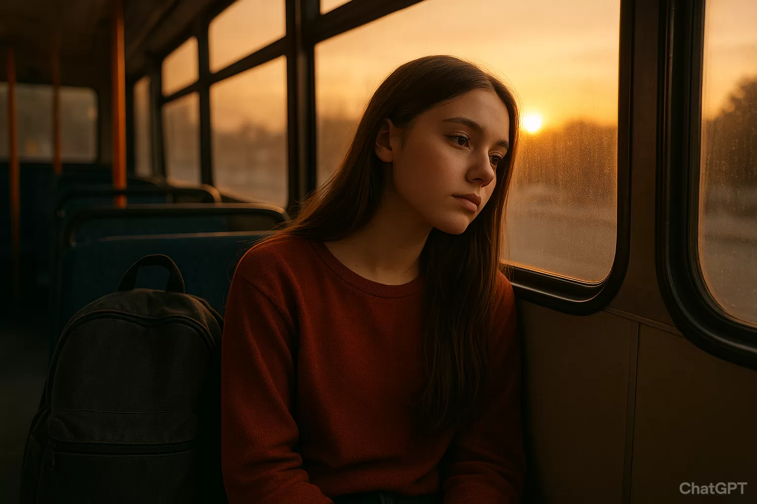 No ônibus, transformou a janela em um travesseiro. Não se importou com o que os
