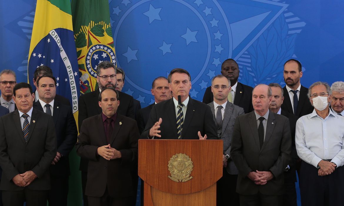 O presidente Jair Bolsonaro fez um pronunciamento na tarde desta sexta-feira (24), no Palácio do…