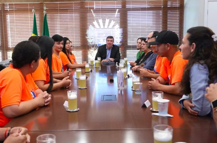 Estudantes do programa Jovem Sucessor, do município de Antônio João, estão hoje (16) na Capital para uma série de encontros com entidades e lideranças do setor produtivo. No fim da manhã, o grupo participou de uma reunião com o governador Eduardo Riedel, onde tiveram a oportunidade de trocar experiências, apresentar perspectivas e conhecer mais sobre as políticas públicas do Estado.