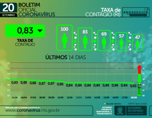 Os municípios que apresentam o maior número de novos infectados com o vírus são: Campo Grande (280), Três Lagoas (16), Dourados (7), Nova Andradina (5) e Chapadão do Sul (4). A taxa de contágio apresentou decréscimo e está em 0.83 no Estado.